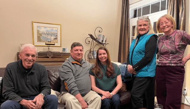 Thanks to Kimberly for sending this photo. Left to right are Wes and Alison Levitt, Kimberly and Paul Brown, Beth Griffin (Hostess), Barbara Kelly, and Sharon and Ryan Gaskin.