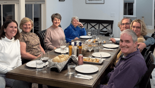 Brian, Sherry, Beth, Deb, Beth, and Marilyn. Ryan serving as photographer. At Deb’s place, she and Brian hosting.