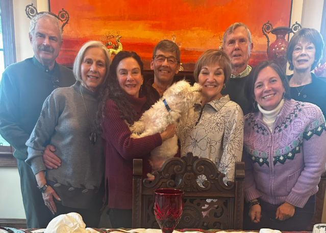 Patrick, Elaine, Diane, Susan, Doug, and Marilyn, Paul (photographer) and Diane hosting.
