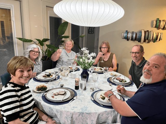 Left to right, Doug, Sheri, Steve, Susan, Allyson, Ed (Maria’s friend who came all the way from TX), Maria, and Mike, Allyson and Mike hosting.